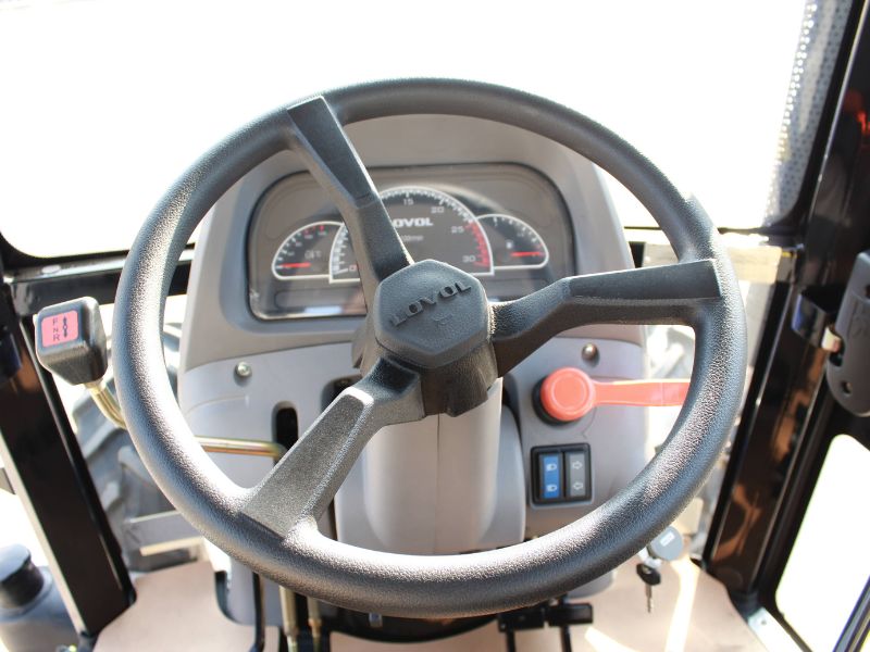 Výber medzi otvoreným ROPS rámom alebo klimatizovanou kabínou s plochou podlahou, nastaviteľným volantom, komfortným Grammer sedadlom, stropným vetraním a panoramatickým výhľadom pre maximálny komfort operátora.