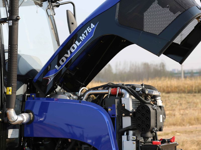 - Výkon 75 HP s motorom Doosan DM02 (2,4 l, 4-valec, Euro V) – turbomotor s intercoolerom a filtrom DPF, vysoký krútiaci moment (300 Nm pri 1400 ot./min) pre silový výkon a spoľahlivú prevádzku.